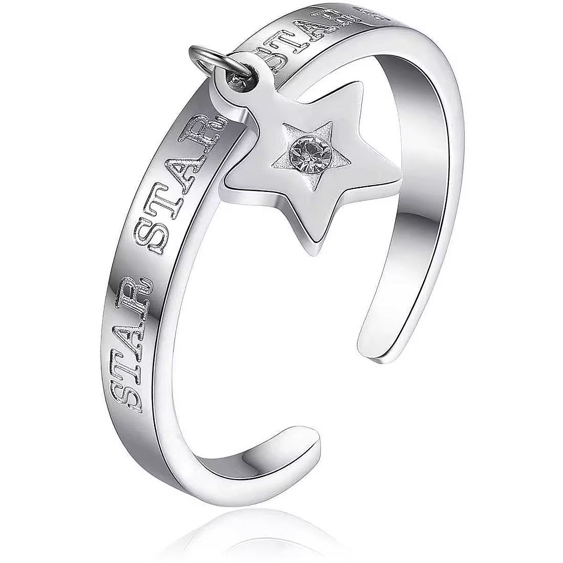 Anello donna , collezione click, in acciaio, pendente stella con cristallo e scritta 'star', misura regolabile