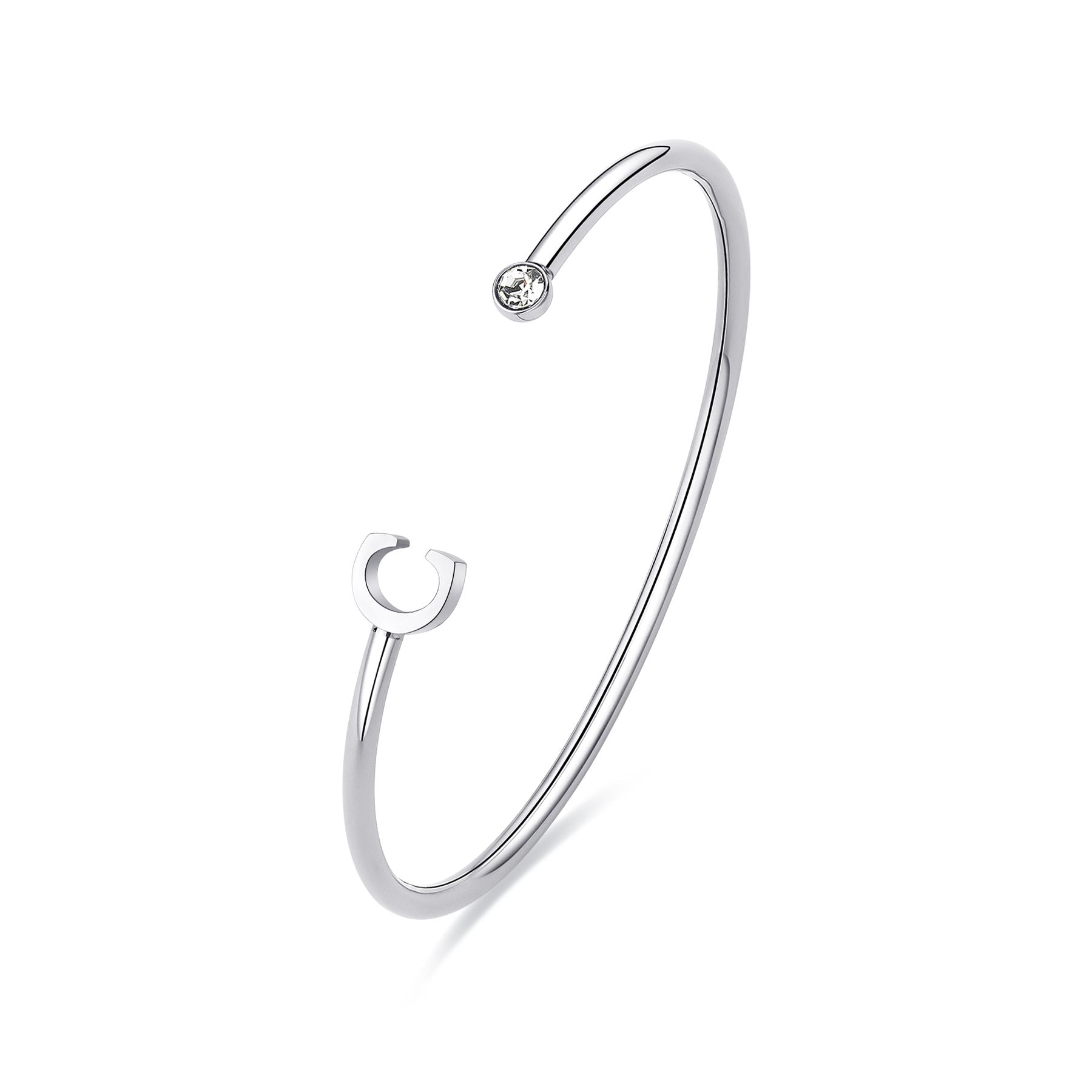 Bracciale rigido in acciaio 316L con cristallo e lettera C.