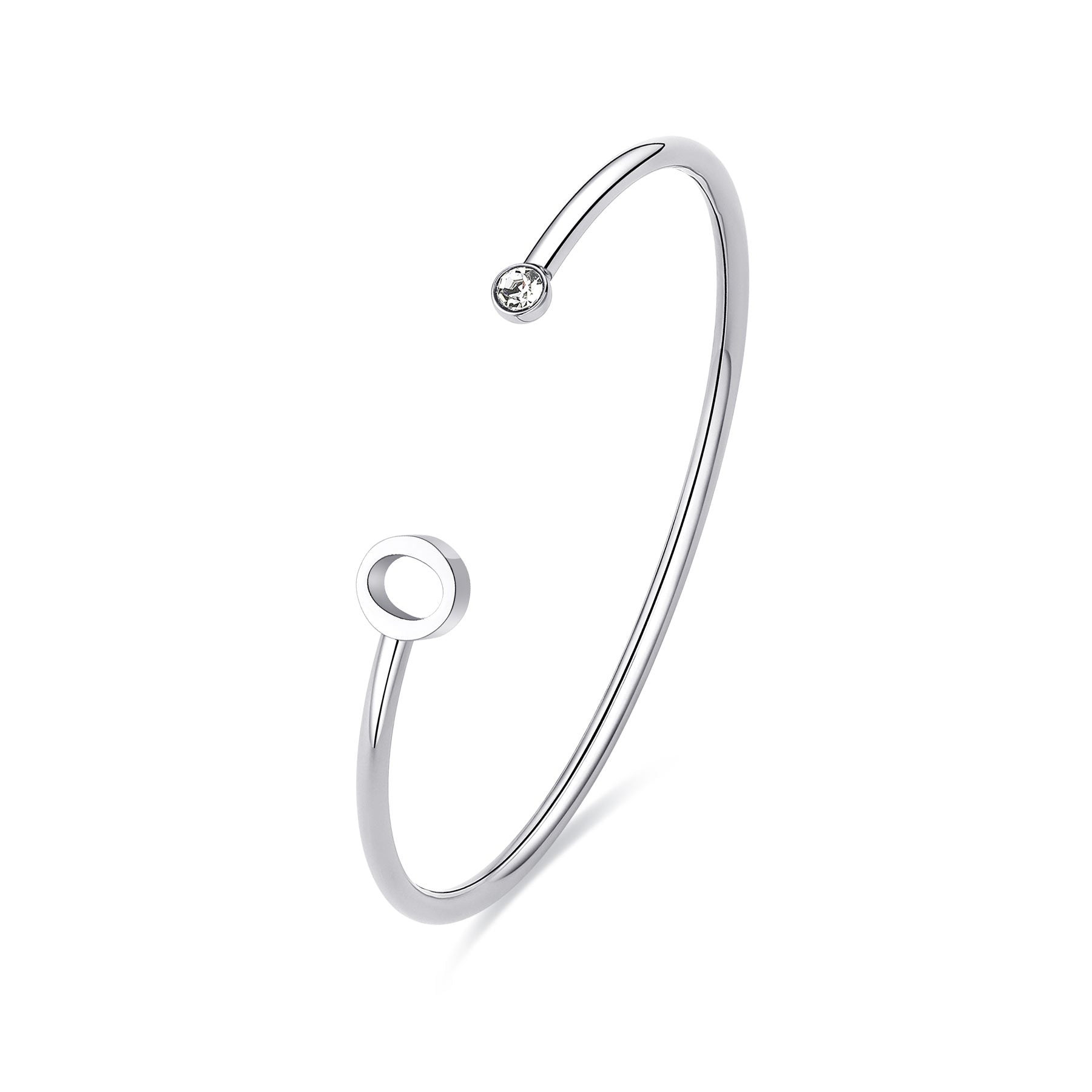 Bracciale rigido in acciaio 316L con cristallo e lettera O.