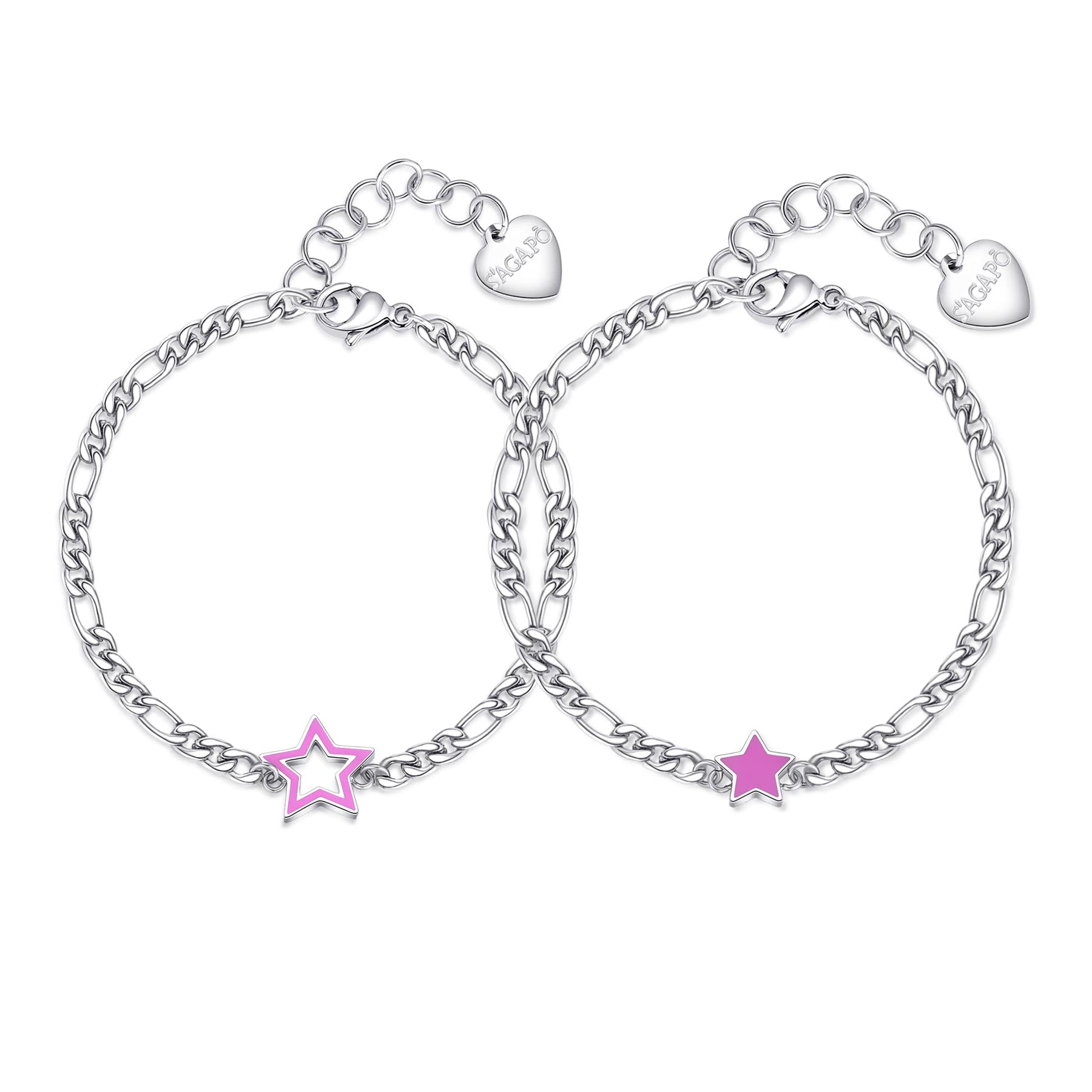 Set di due bracciali in acciaio 316L con stelle in smalto fucsia.