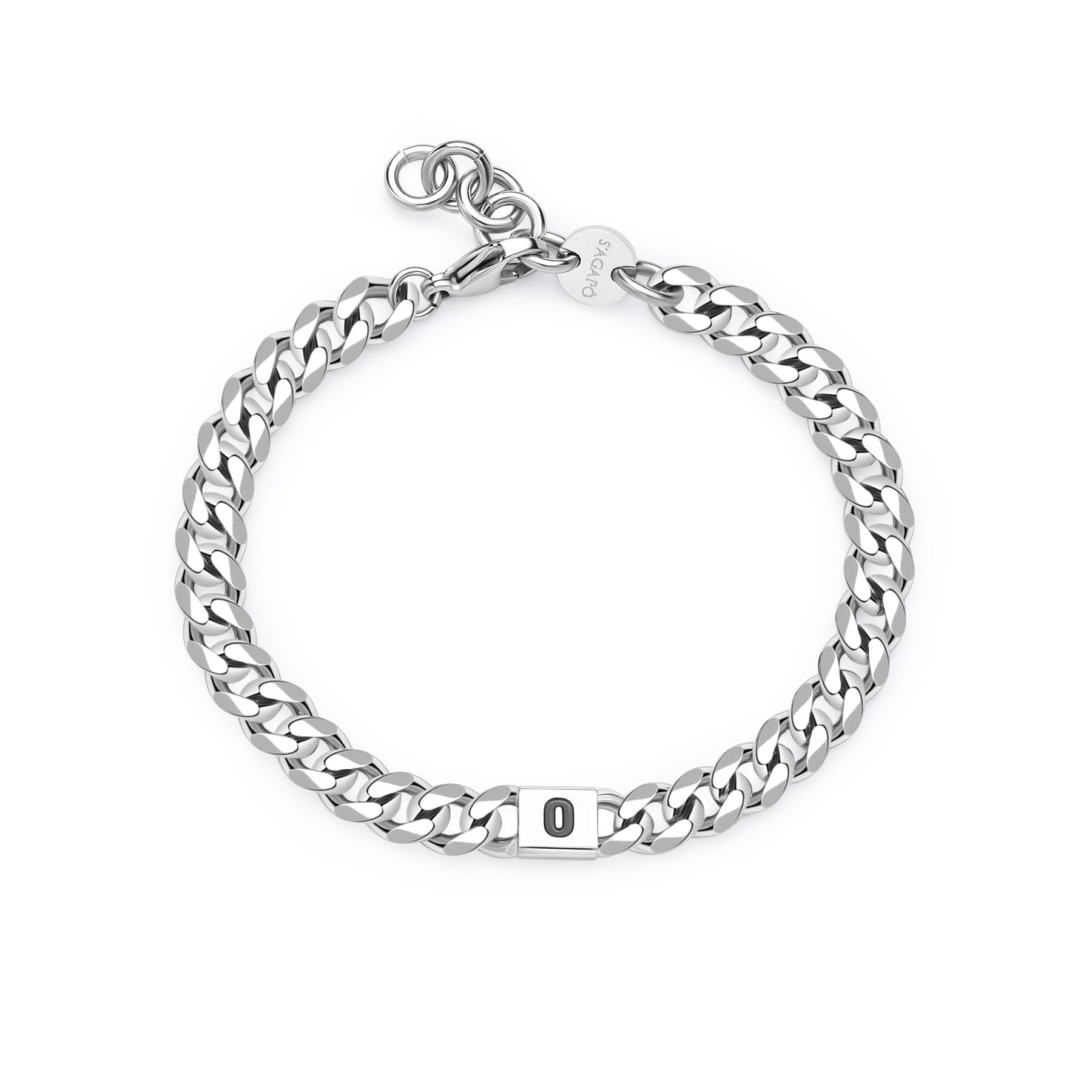 Bracciale in acciaio 316L con centrale con lettera O e smalto nero.