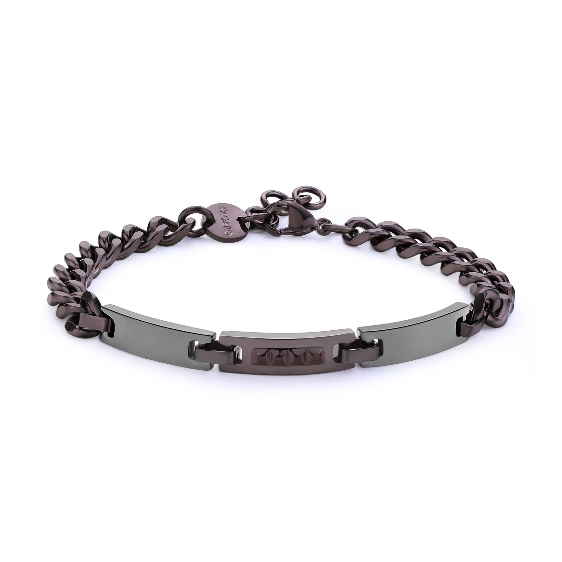 Bracciale catena in acciaio 316L e finitura pvd marrone e centrale in finitura pvd colore rutenio.