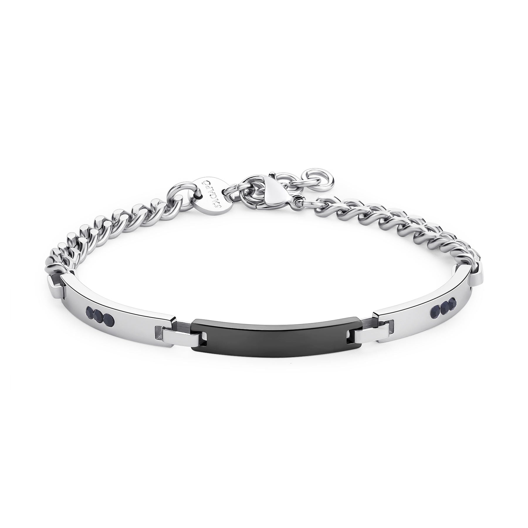 Bracciale catena in acciaio 316L e centrale con cristalli neri e finitura pvd colore rutenio.