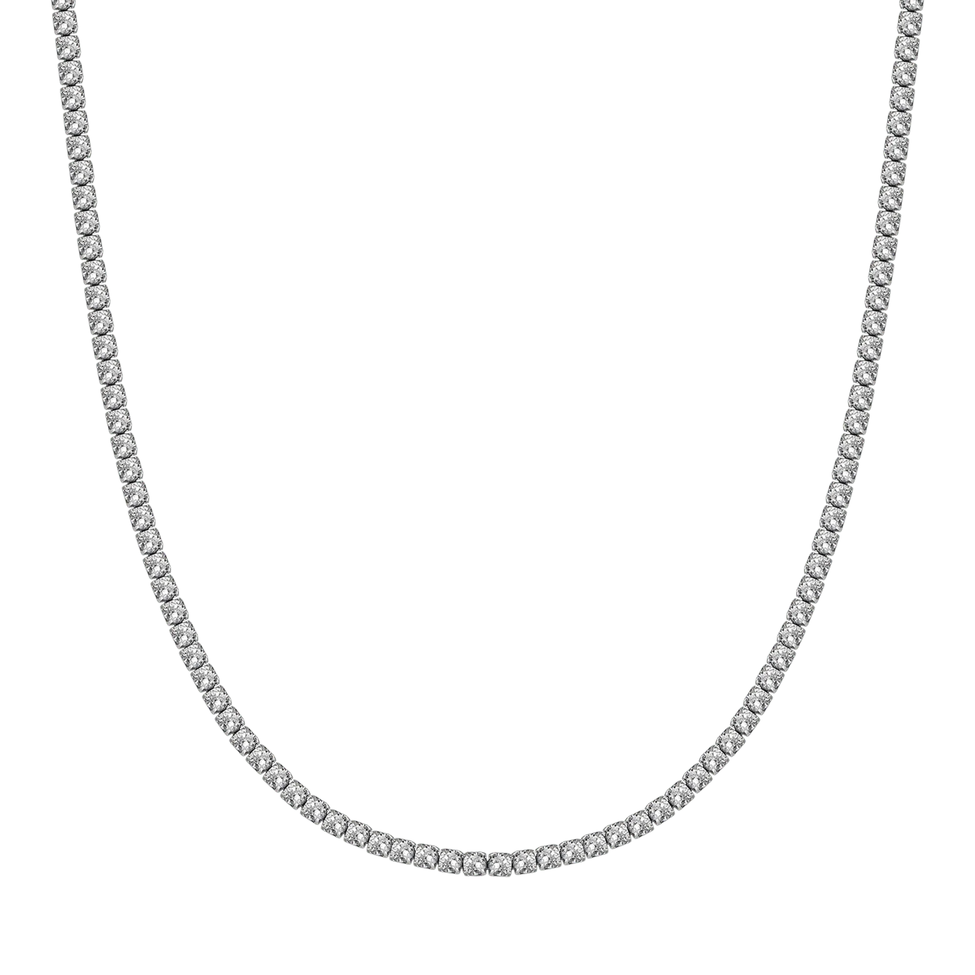 Collana tennis in acciaio con cristalli bianchi. Lunghezza: 37 + 5 cm. Diametro cristalli: 4 mm. Tutto ciò di cui hai bisogno per brillare come una regina lo trovi in questa collana da tennis! Realizzata in acciaio e sfavillante di cristalli bianchi da 4 mm, questa collana donna è l'accessorio elegante per qualsiasi gusto di moda! Unire la bellezza e il lusso ora!