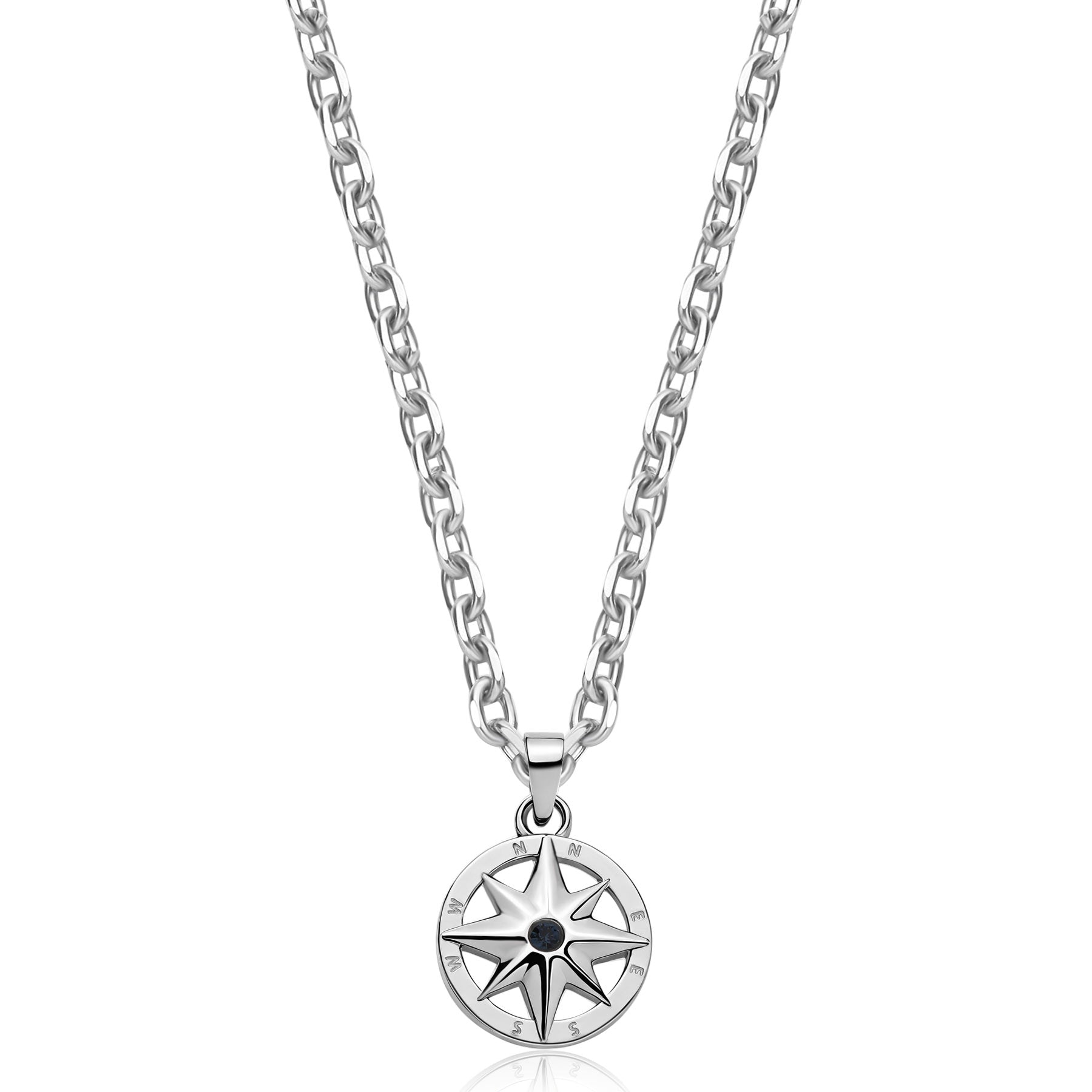 Collana in acciaio 316L con pendente rosa dei venti e zircone blu.