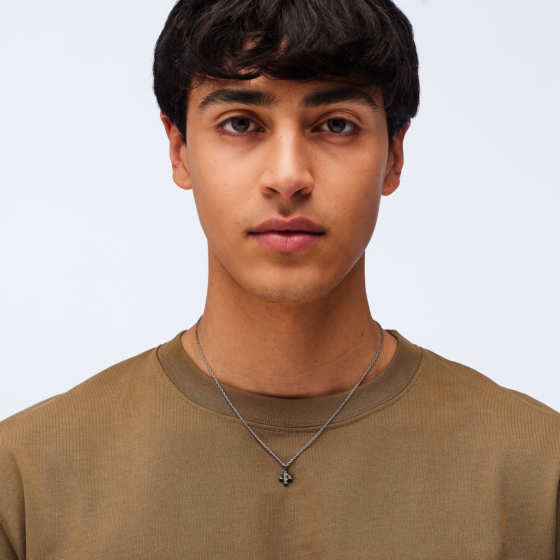 Collana in acciaio 316L e finitura pvd colore rutenio con pendente a forma di croce.