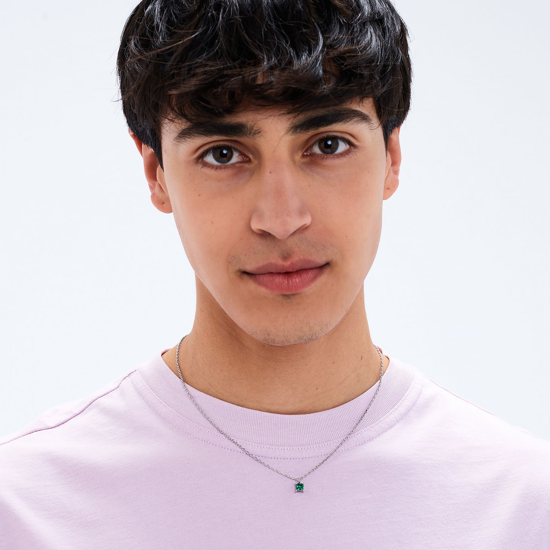 Collana in acciaio 316L e pendente con cubic zirconia colore emerald.