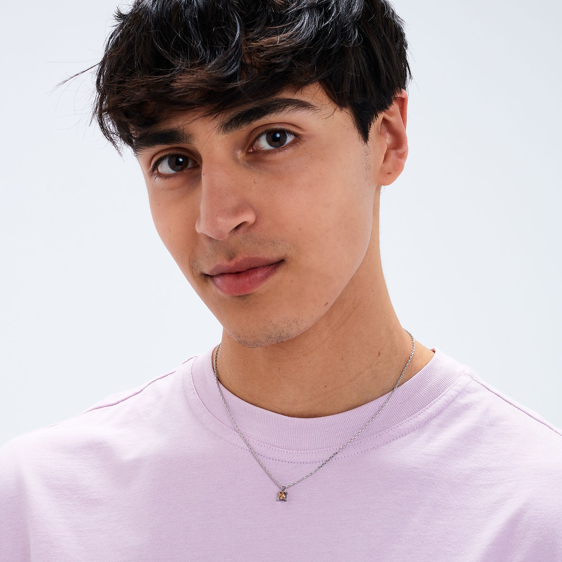 Collana in acciaio 316L e pendente con cubic zirconia colore coffee.