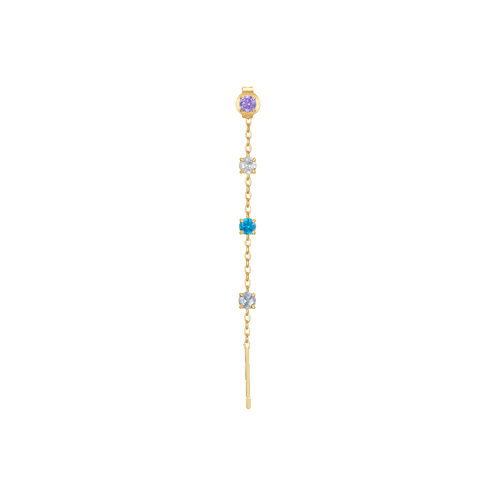 Mono orecchino donna in acciaio IP gold con cristalli multicolor Lunghezza: 5,5 cm Misura cristallo:3 mm Scopri la magia della luce con questo mono orecchino in acciaio IP gold con cristalli multicolor, un gioiello originale che cattura ogni sguardo.