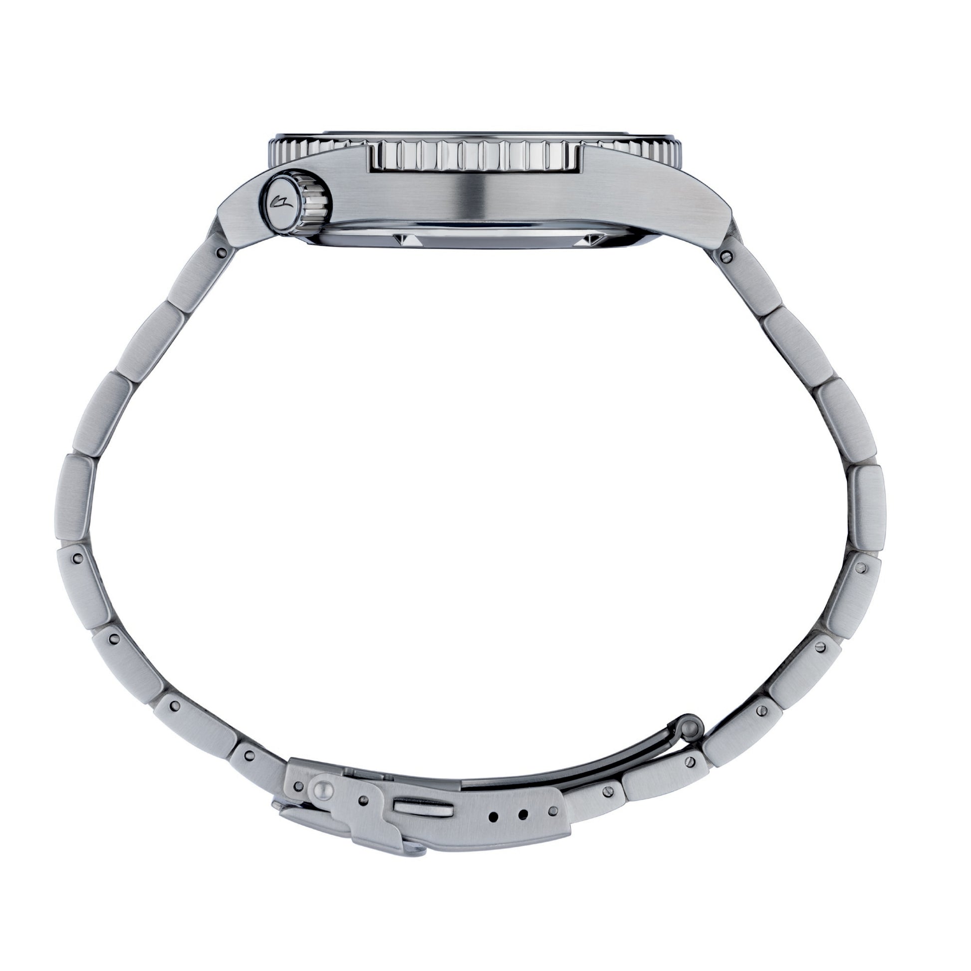 L'iconica collezione Manta si arricchisce di un nuovo modello che raggiunge massimi livelli di performace. Questo orologio solo tempo è infatti dotato di un movimento Epson PX82A che associa due tecnologie: un pratico calibro automatico e un preciso quarzo. Il moto della massa oscillante produce energia che carica una batteria. Il movimento ibrido è in grado di regolare il funzionamento dell’orologio fino a 6 mesi a piena carica. Performance, ma anche estetica, per questo orologio, caratterizzato da dettagli che fanno la differenza, tra cui vetro zaffiro, fondello con movimento a vista, lunetta girevole unidirezionale zigrinata in alluminio anodizzato con luminous a ore 12, finitura bilux dell'acciaio, tecnologia luminescene di alta qualità. Un vero e proprio evergreen.