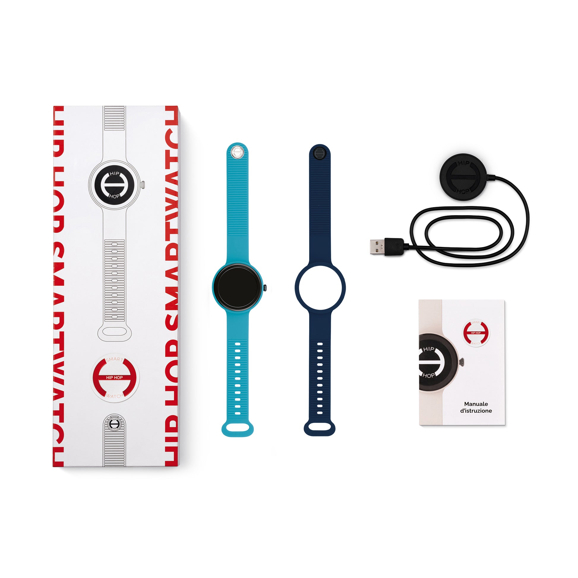 Next è lo smartwatch di Hip Hop, che unisce coolness, design e praticità. Grazie alle sue innumerevoli funzioni, ti permette di rimanere sempre connesso durante le mille attività di ogni giorno. Dotato di due cinturini intercambiabili, uno color azzurro cielo e uno blu navy, ti accompagnerà durante l'intera giornata con intelligenza, stile e ironia. Cassa in ABS nera, display 1,09 pollici, metodo di ricarica a 2 pin magnetiche, 8 quadranti personalizzati, compatibile con IOS e Android. Funzioni legate alla salute, allo sport e alla quotidianità, come meteo, musica, monitoraggio del sonno, ossigeno del sangue, notifiche di chiamata, messaggi e app. Configurazione famiglia.